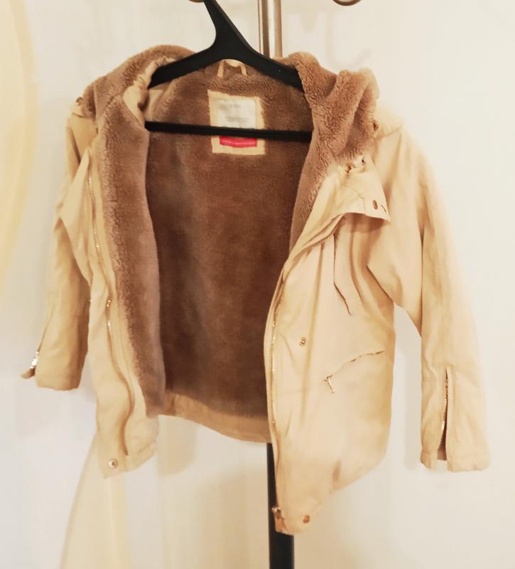 Продам бежевую куртку с капюшоном, на меху фирма "Zara"- для девочки, рост 128см, на рукавах есть молнии, осень-зима, полиэстер, в хорошем состоянии