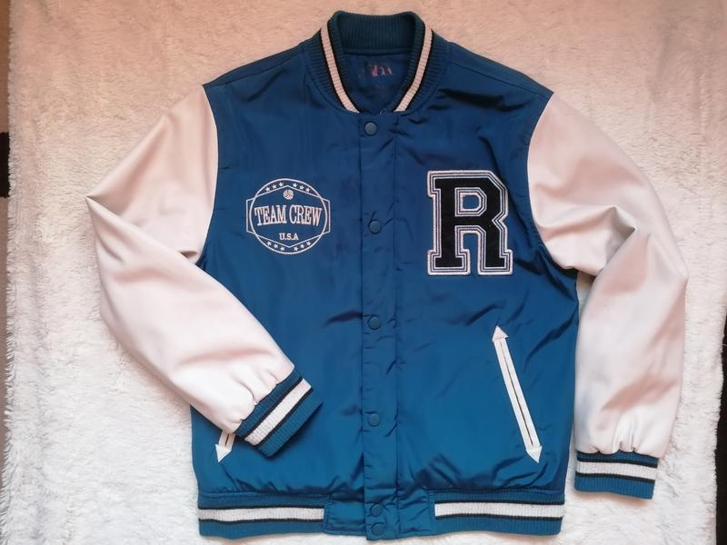 Бомбер Zara на 11-12 лет. Стан хороший. На молнии и кнопках, 2 прорезных боковых кармана. Рукава кожзам, ткань типа плащевки непромокаемая и ветронепродуваемая Замеры: Ширина комди-50 Длина-58 Плечи-43 Длина рукава от плеча-54.
