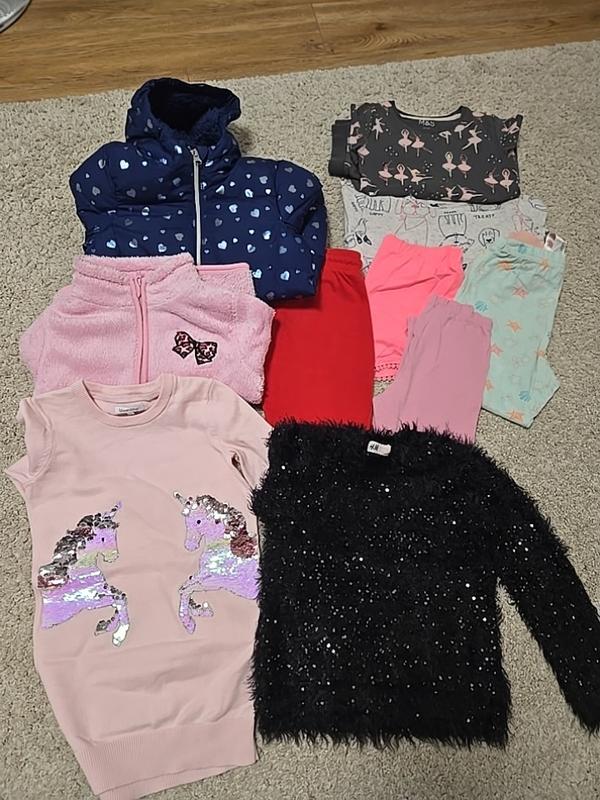 Все вещи что на фото, в отличном состоянии 2 пижамы штанишки и лонг Лосинки Шортики и штанишки для дома Теплые красные штаны на флисе Туніка Тепла рожева кофта з бантиком на замку куртка в сердечки весна холодная осень Нарядная кофта в пайетки
