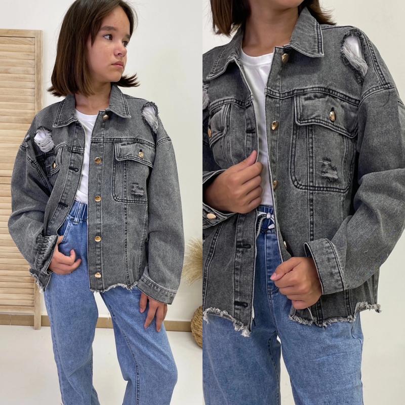 Невероятно стильная джинсовка для девочек ткань плотный джинс застегивается на пуговицы рукава на манжетах есть накладные кармашки выглядит очень стильно! цена 985 грн Рост/возраст/длина/пог/рукав от горловины похибка+-2см 122-128/8р/41/47/52-6шт 134-140/10р/44/48/56-2шт 170-176/16р/58/55/67-3шт ------------------- 146-152/12р/49/50/60-нет 158-164/14р/54/52/63-нет