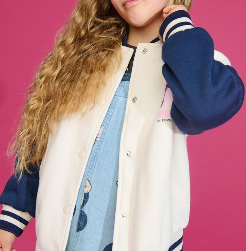 Фирменный бомбер Minni Маус. Очень красивый и удобный с воротником-стойкой, пуговицы-кнопки. Цвет: белый с темно-синим. Размеры: 98-140