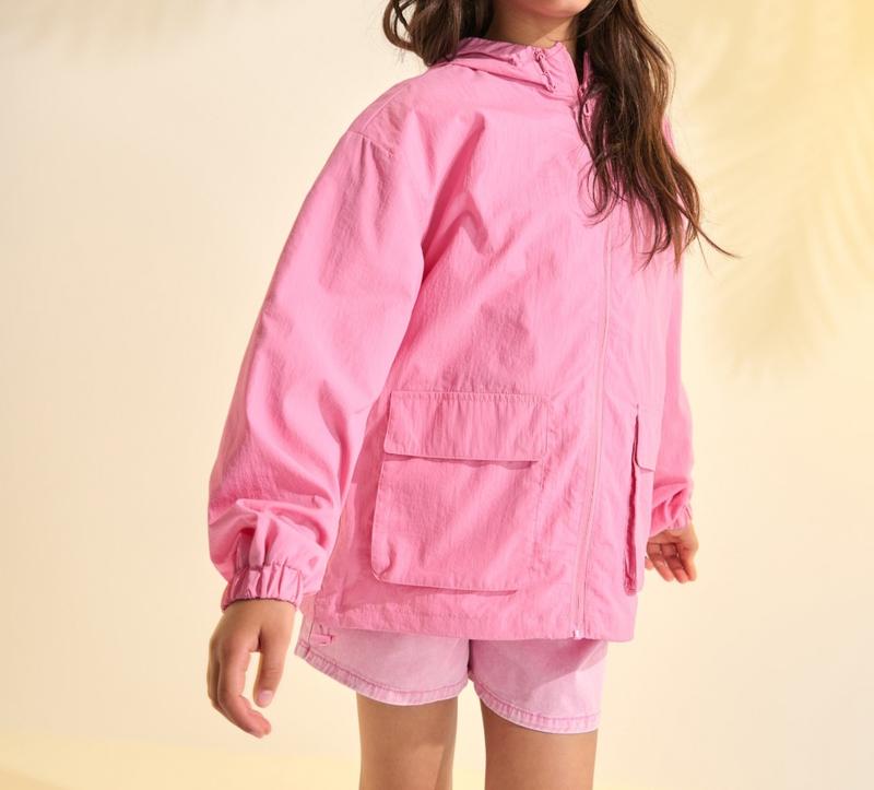 Фирменная куртка. Удобный капюшон, рукава с оформлен резинкой манжетами, гладкая подкладка. Цвета: розовый. Материал: 100% полиамид. Размеры: 140, 152, 158