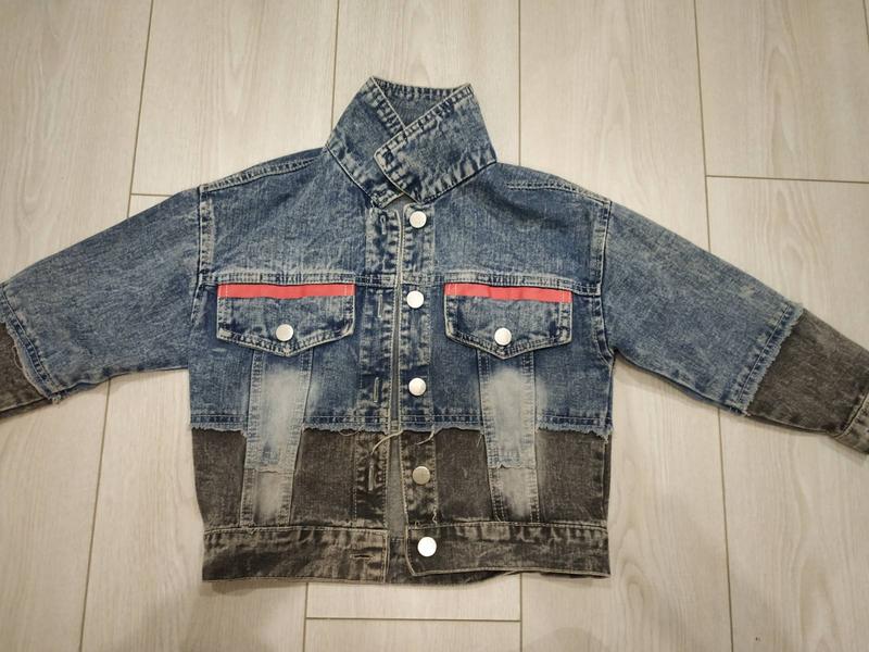 Джинсовка на 4-6 лет в идеальном состоянии, есть один недостаток, на последнем фото видно, но на ношение не влияет.