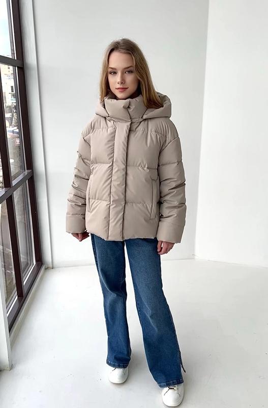 через кнопку купить только полная оплата!!! ДЕМІ пуховик! Стильный, легкий и удобный. Застегивается на молнию. Есть два кармана. Внизу куртки есть утяжка. Молния закрывает планка. Капюшон съемный, застегивается на кнопки. Ткань: качественная влагостойкая плащевка, наполнитель - эко пух. Качество суперовое! Замеры: 146 длина - 53см, полуобхват груди - 48см, рукав от горловины - 63см. Мс