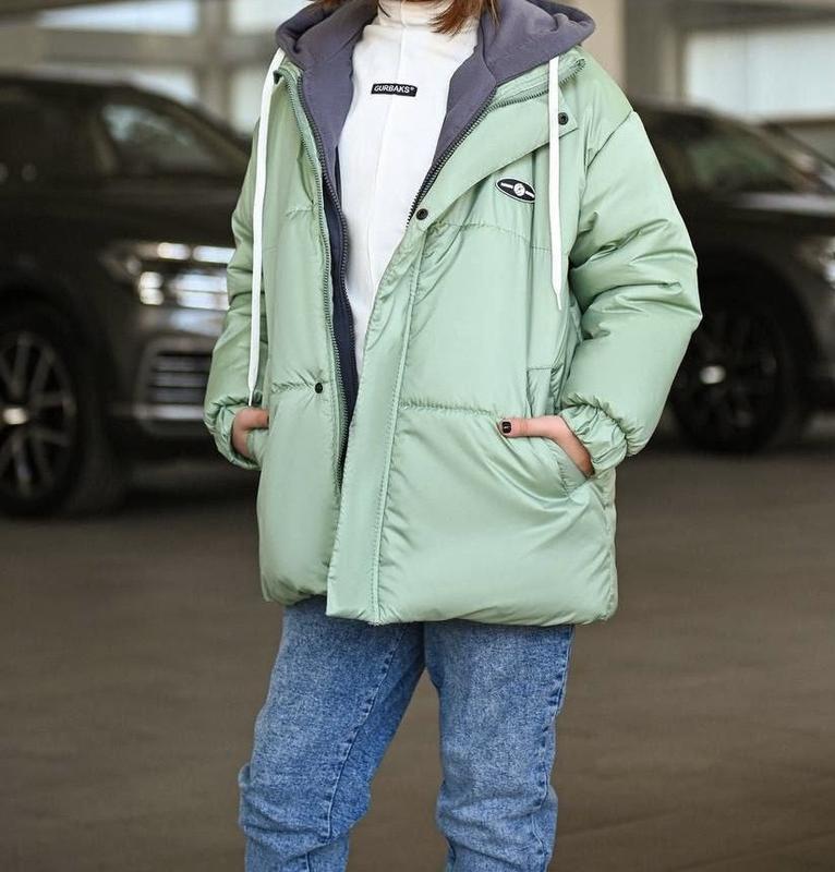 Трендова підліткова куртка Розміри - 140-146, 146-152 Виготовлена в поєднанні двох видів тканини : плащової та трикотажної високої якості, наповнення холлофайбер щільністю 150. Блискавки закриваються клапаном на кнопках . Колір - фісташка Високої якості пошив !