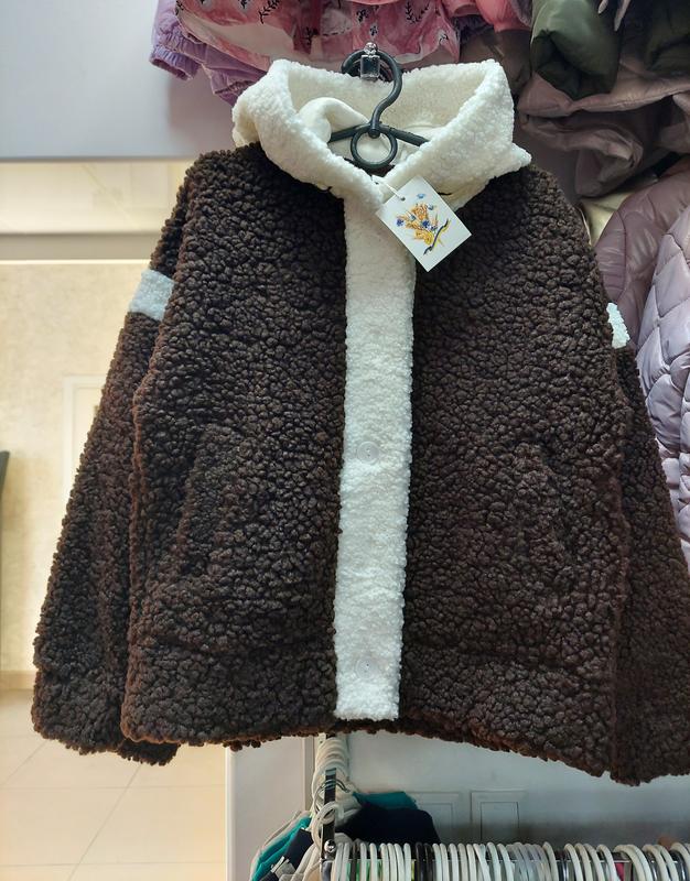 Легкая куртка тедди для девушки в шоколадном 🍫цвете в сочетании с светло молочным. Застегивается на пуговицы, капюшон не снимается. Размеры в наличии: 134 рост:РЕЗЕРВ. рукав от горловины-61см. длина-50см. ПОГ-47см. 140 рост: ПРОДАНО. рукав горловини-64см. длина-54см. ПОГ-50см. 146 рост: ПРОДАНО. рукав от горловины-66см. длина-55см. ПОГ-52см. 152 рост: рукав от горловины-71см. длина-56см. ПОГ-55см. 158-рост: рукав от горловины-74см. длина-61см. ПОГ-56см.