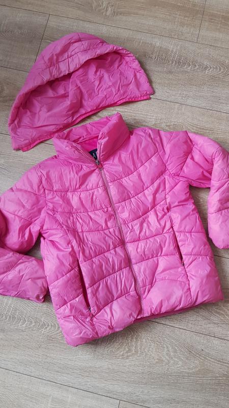Місцями збита підкладка. Є незначні плями. Капюшон є, але відлетів бігунок. На фото вийшла гарно, в житті не така яскрава.