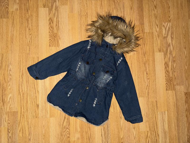 Джинсова куртка на хутрі , приблизно на 5-6р 395грн Довжина 53, рук від плеча 39, пог 38 Стан ідеальний