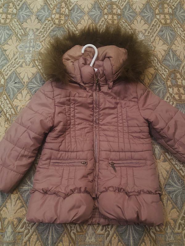 Курточка на молнии с капюшоном и отстегивающимся мехом. Размер на 92см