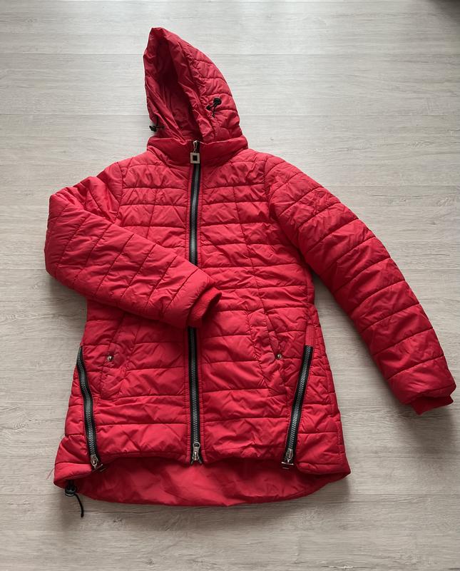 Куртка с дефектами на фото, есть дирки, пятна Капюшон на молнии, карманы на застежке, два замочки Размер 158