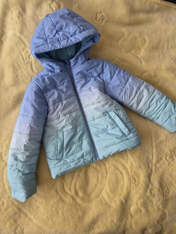 Куртка х хорошим переходом омбре, носила девочка, умывает теплую флисовую подкладку,очень легкая, легкая в уходе, быстро просыхает после стирки, идеальная будет на ходу ребеночка, на рост 116-122