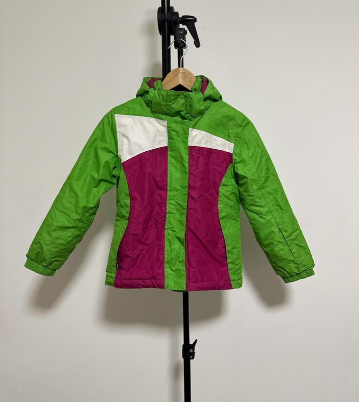 Куртка зимова спортивна, використовували для лижного катання. Яскравого кольору, що дає змогу бачити свою дитину здалеку і не загубити її серед великої кількості людей. В середині куртки є місце для контактів батьків дитини, на той випадок якщо дитина загубиться. Також є внутрішні зручні кишені. Міцна тканина та якісна фурнітура. Є маленький нюанс зі зворотнього боку куртки - дитина порізала тканину. В іншому має чудовий стан. Підходить на зріст 134-140см.