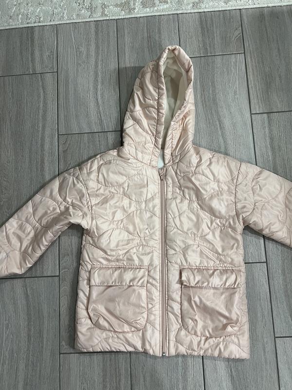 Курточка с тонким синтепончиком и флисом. Имеет дефекты, виден на фото. Небольшие следы от синей краски.