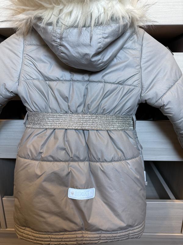 Теплая, зимняя куртка для девочки. Приталенная, что делает ее еще теплее, и комфортной. Очень красиво смотрится на силу силуэте. Капюшон снимается. В очень хорошем состоянии. На рост 104