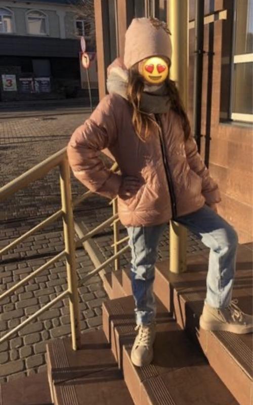 Куртка в гарному стані. Дефектів нема. Носили навіть в легкий морозець. Розмір 134. Але Орієнтуйтесь по замірах: Рукав від плеча 51см Побхват грудей 41-42 Довжина від плеча 51 см Заміри зроблені без натягу Шапка і хомут в подарунок