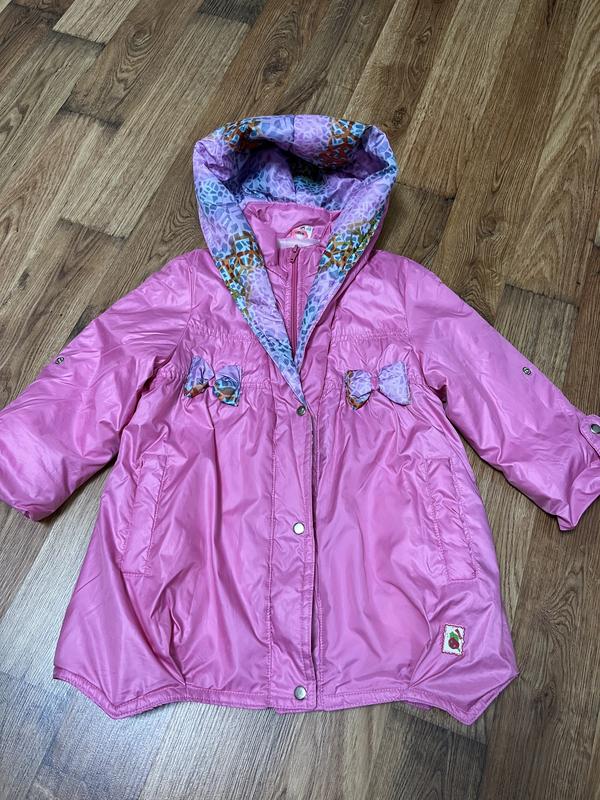 Курточка на девочку, где-то рочков на 3-4, лучше ориентируйтесь на замеры, б/у, в хорошем состоянии, на рукаве есть дефект, фото в объявлении.