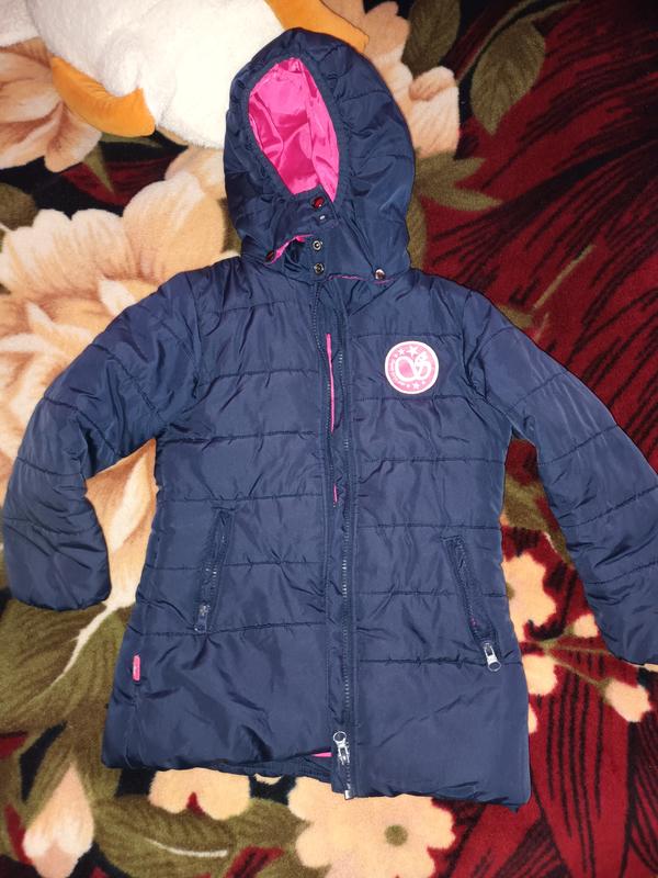 Курточка для девочки. В нормальном состоянии. Не порватая. Довольно тёплая. Единственное на фото показала нет одной кнопочки. При носке незаметно. темно синий цвет. 4-6 лет