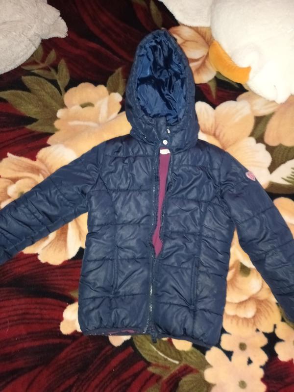 Курточка для девочки. В нормальном состоянии. Не порватая. Довольно очень тёплая. темно синий цвет. 4-6 лет. Можно и зимой одеть тёплая. немного катышки на манжетах. то мелочь можно спокойно машинкой убрать