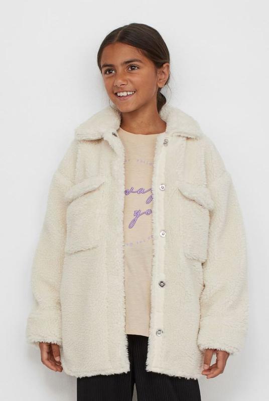 Гарна куртка сорочка. Можна носити замість куртки, є деякі незначні недоліки, зсередини трошки хутро заюзане, але не сильно, і на спині як запачкане хутро начебто, невеликий кусочок. А так гарному стані, колір не білий, як кремового більше. має 4 кишені.