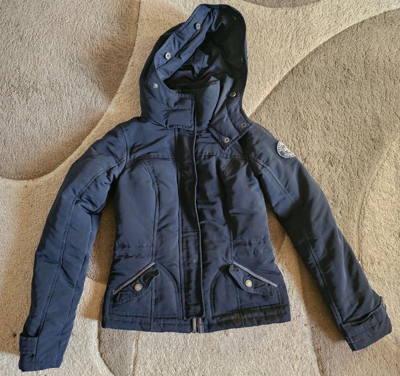Фирменная, красивая, в идеальном состоянии, состав пух-перо,не толстая, тоненькая и удобная. Длина-50 см,пог-37 см,от плеча к плечу-32 см, длина рукава от плечевого шва-57 см.