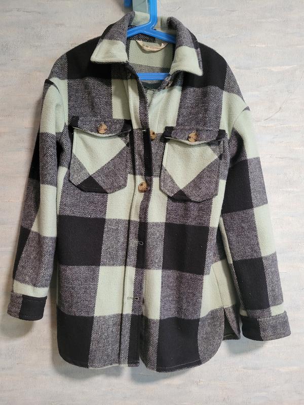 Куртка рубашка теплая на весну H&M 9-10 лет, в клетку приятного зеленого цвета