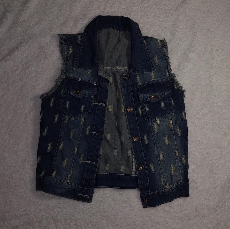 Новое состояние! Детская джинсовка-безрукавка на девочку 10-13 лет. Карман настоящий. Длина - 49 см, полуобхват груди - 45 см.