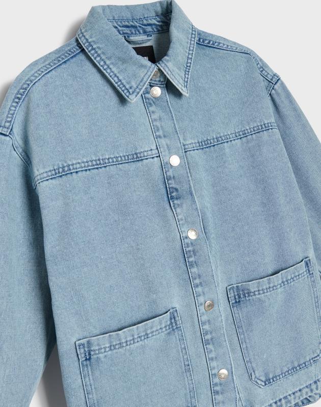 Фирменная джинсовая куртка-рубашка с карманами на девушку. Материал: 100% хлопок. Размеры: 140-164 (уточняйте)