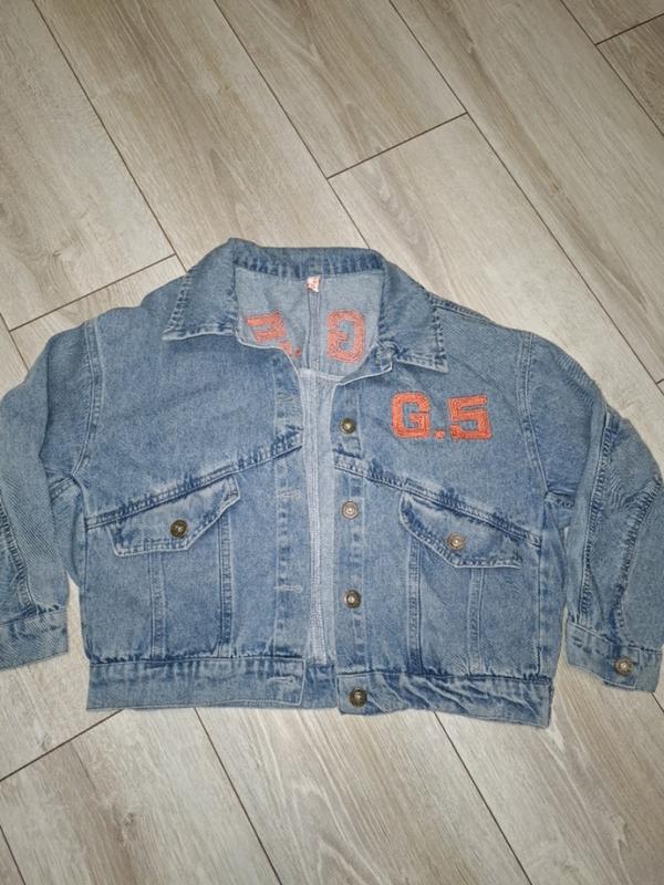 Джинсовая куртка на девочку в идеальном состоянии. Она идет как оверсайз, укороченная, но ребенок носил как и удлиненную. Размер указан 150, но ориентируйтесь по замерам. Длина по спине 45 см, длина рукава от горловины 54 см, плечо спущенное.