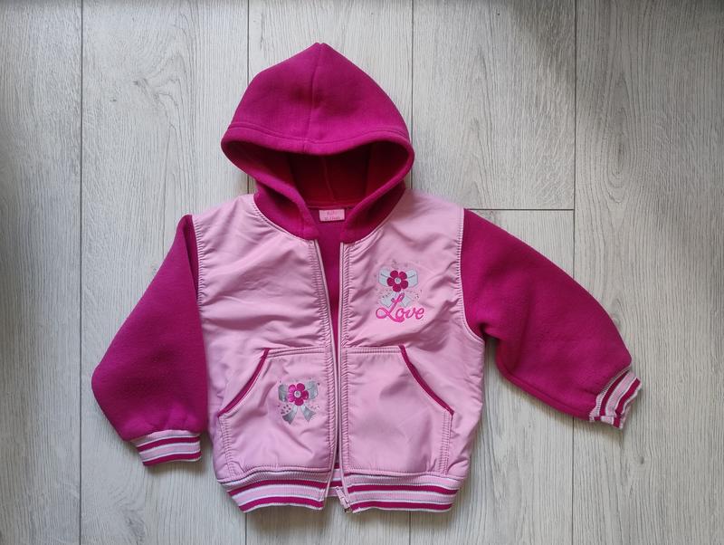 Веселая куртка с карманами и капишоном на девочку Длина 34 см, от рукава до рукава - 80 см