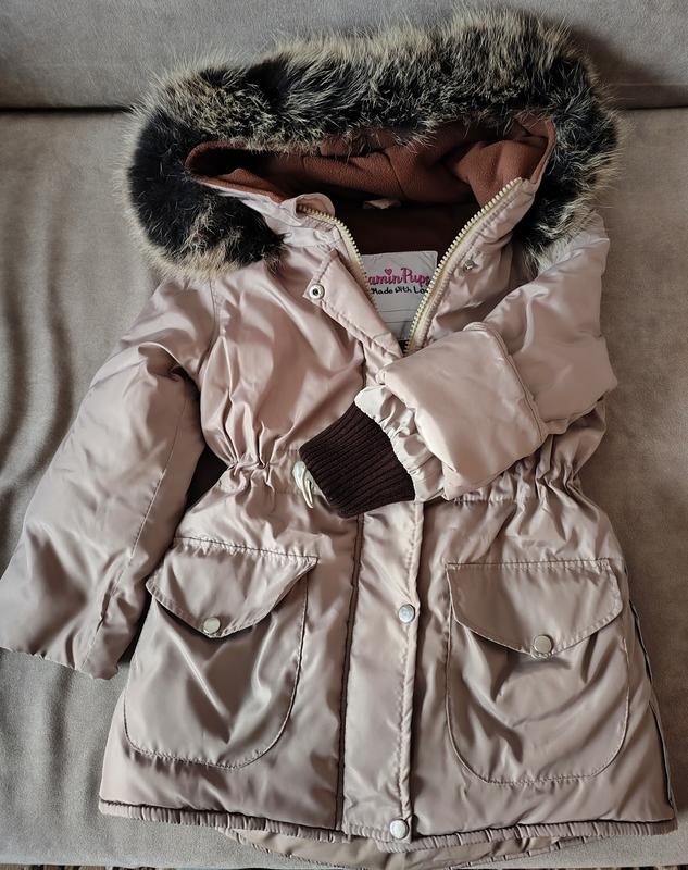 Очень теплая качественная курточка, на капюшоне мех енота на кнопках, внутри синтепон, подкладка флис.
