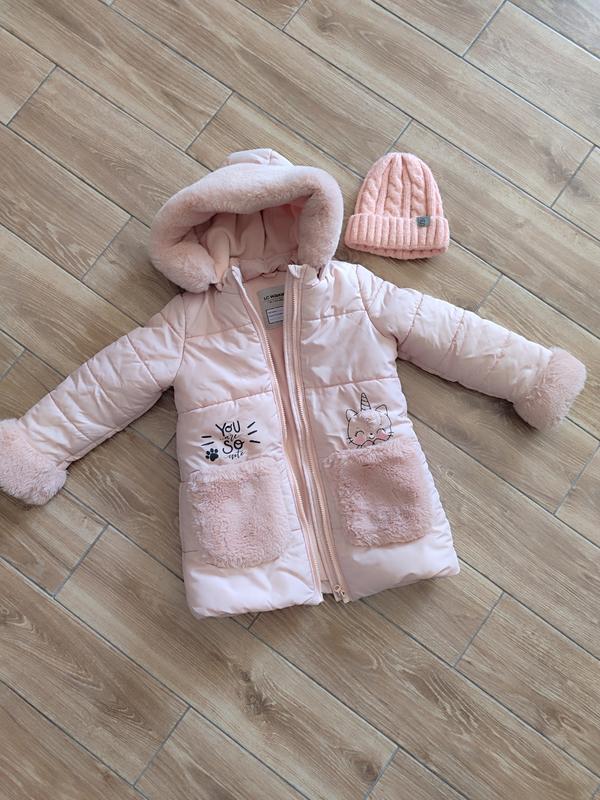 Очень удобная. Флисовый подклад. Капюшон не снимается. Шапочку подарю. Вещи из гардероба моей крохи, покупала новое. Длина 56 Рукав 43 Под руками 37