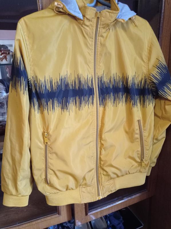 куртка для мальчика с капюшоном, двухсторонняя, со второй стороны серая пог 51,пот50, длина 62, длина рукава 56