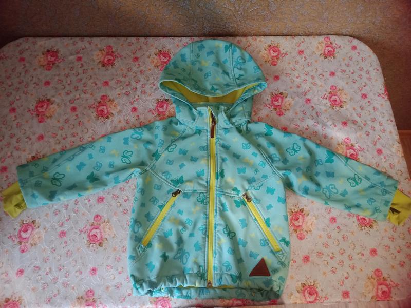 состояние идеальное, на спине имеет светоотражающую наклейку, красивый принт с бабочками удлиненный перчаток, чтобы не мерзли ручки.