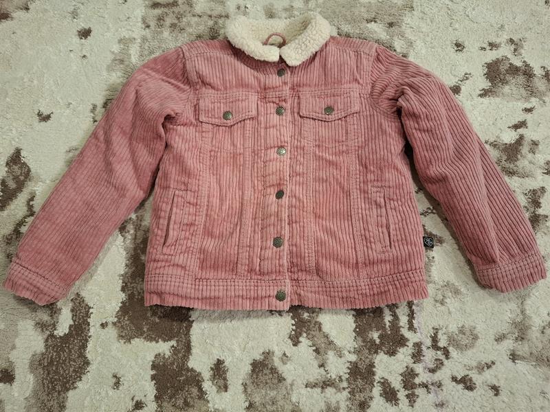 Утеплённая вельветовая куртка для девочки на кнопках, с карманами.