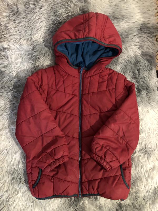 Куртка демисезонная, легкая, утепленная флисом, не продувается ветром, не промокает, имеет карманы, капишон не отстегивается. Замеры: ширина плеч 28 см, полуобхват груди 36 см, полуобхват талии 38 см, ширина по низу 32 см, длина куртки 45 см, длина рукава от плеча 38 см, от горловины 44 см. Размер указан 4-6 лет. Состояние очень хорошее.