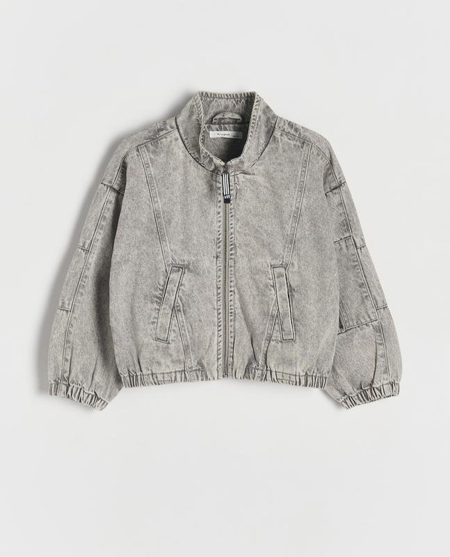 Стильная джинсовая куртка бомбер с вареным эффектом, застежка на молнию, по бокам два рабочих кармана, декоративные вставки, низ регулируется резинкой, размир 146- 152 (11-12 р.), длина 48 см, о.г. ширина под рукавами 51 см, рукав от горловины 62 см, 💵 1200 грн.