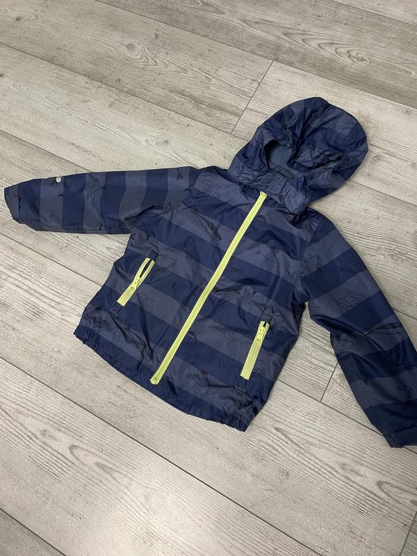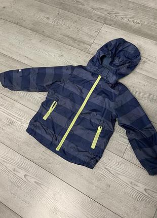 Курточка дитяча синього кольору, розмір по бірці 98-104 см (по факту дитина носила, навіть, при зрості 112 см). Осінь-весна. Куртка стійка до вітру. Всередині на флісі. Капюшон на кнопках, за бажанням, можна знімати. Стан чудовий, недоліків немає.