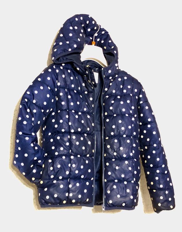 Куртка на девочку, утеплённая, стильная в горошек, на рост 140