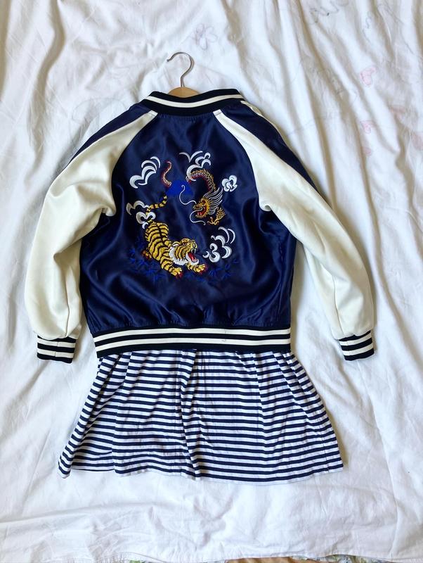 Чудова куртка з вишитими тиграми, атласна, є кишені