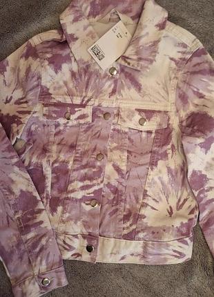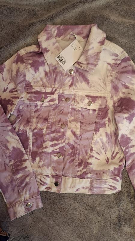 Яркая джинсовка на девушку 9-10 лет, на рост 140 см. Два нагрудных кармана. Застежка кнопки. Ширина 37 см Длина по спине 40 см Рукав от плеча 52 см Рукав от шеи 61 см