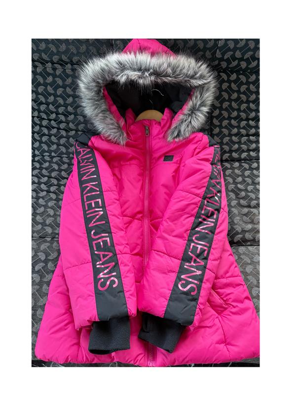 Зимова підліткова куртка відомого бренду Calvin Klein Jeans для дівчинки 16 років.(орієнтуйтесь на заміри) Капюшон та хутро не відстібається.Колір-фуксія.Дуже тепла. Calvin Klein це завжди стиль та лаконічність!