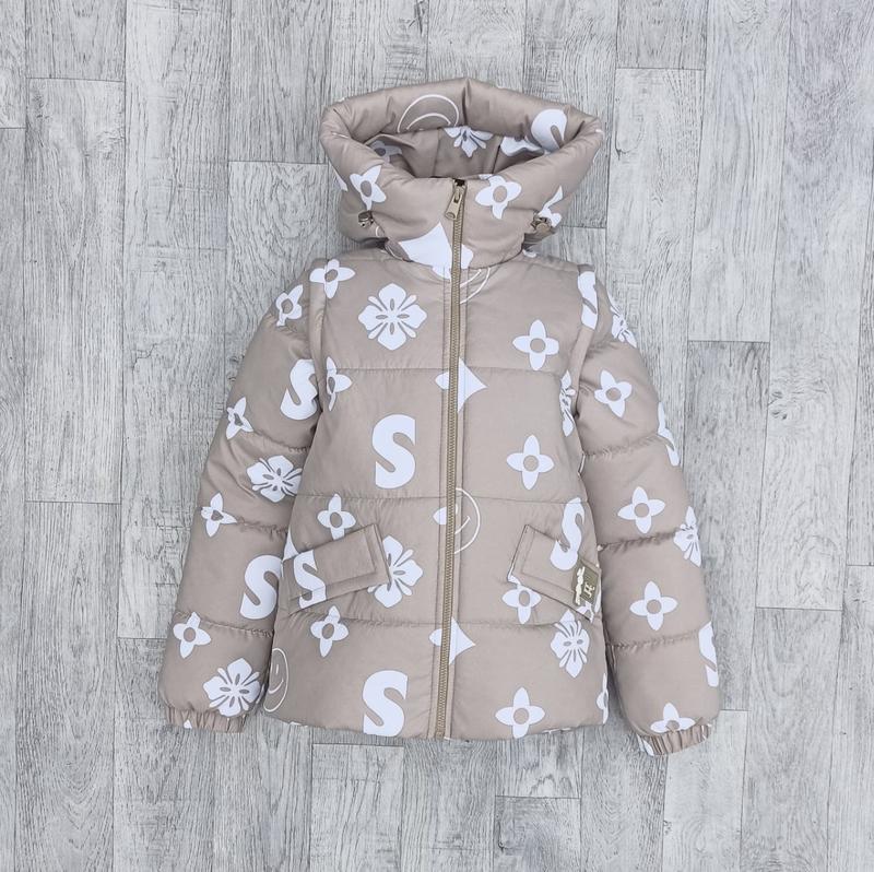 ✨ Принтованная куртка-жилетка для девочек ✨ ✔ Современный дизайн – ткань плащевка «Эми» с актуальным принтом ✔ Два в одном – носите как куртку или жилетку, адаптируя под погоду. ✔ Защита от ветра – затяжки на капюшоне и по низу изделия позволяют регулировать посадку. ✔ Удобство в деталях – два вместительных внешних кармана для мелочи. ✔ Легкая и теплая – имеет утеплитель силикон 150 и подклад из нейлона, что обеспечивает комфорт в носке. ✔ Удобная застежка – прочная молния для быстрого одевания.