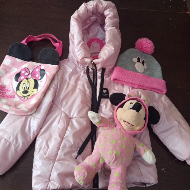 Куртка для девочки с шапочкой игрушкой и сумочкой Микки Маус