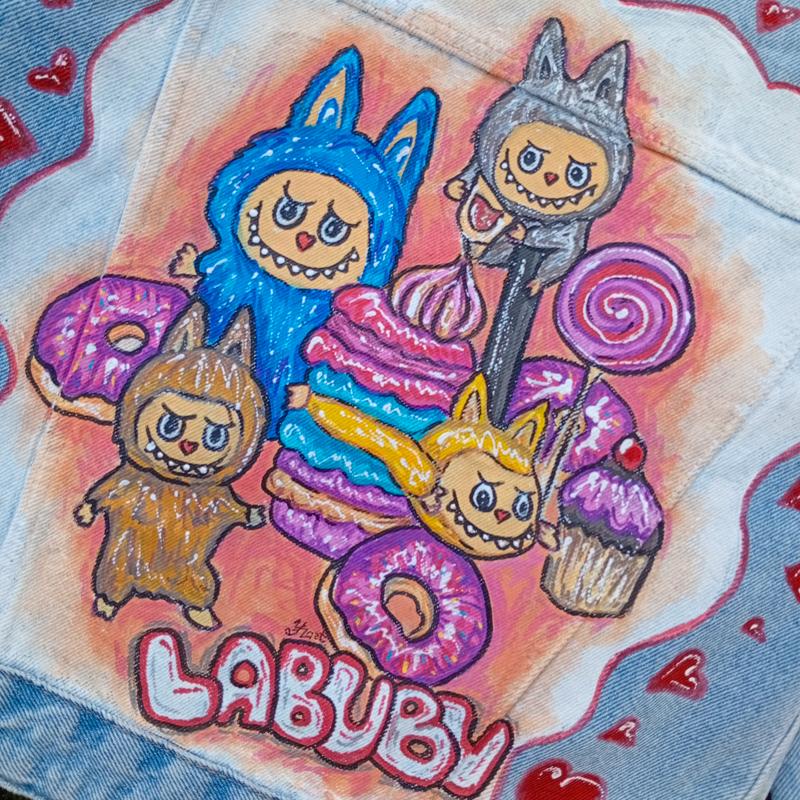 Детская куртка с ручной росписью красками, которые устойчивы к стирке. На рисунке изображены трендовые куклы #лабуба Куртка в размере 8 (мерки zara) доступна к заказу.