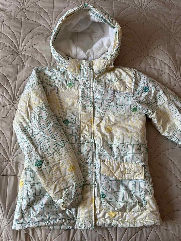 очень классная качественная лыжная куртка Airwalk. Размер 155 см. Цвет белый (на фото желтый оттенок, но она белая!). Теплая и не тоненькая. Точно не промокает. Испытано катанием на лыжах. Имеет внутренний пояс от снега. Из недостатков: нижняя дополнительная резинка для стяжки растягивалась, то ее просто сняла; также растянулись резинки на капюшоне; на кармашке для скипаса пожелтей и надернулся силикон. Все остальное в отличном состоянии, поэтому и такая цена. Резинки можно легко заменить. Замеры: рукав от плеча 56 см, ширина по плечам 39 см, ширина пиж рукавами 46 см, длина по спине 60 см.