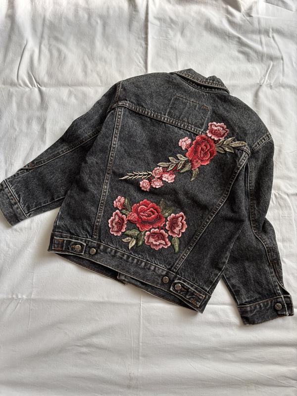 Неймовірна джинсова куртка з квітковими нашивками на спинці. Стан ідеальний. По бірці на зріст 128 см(7-8 років). Довжина 48,5 ПОГ 42 Ширина внизу38 Довжина рукава від шиї55,5 Довжина рукава від пройми31