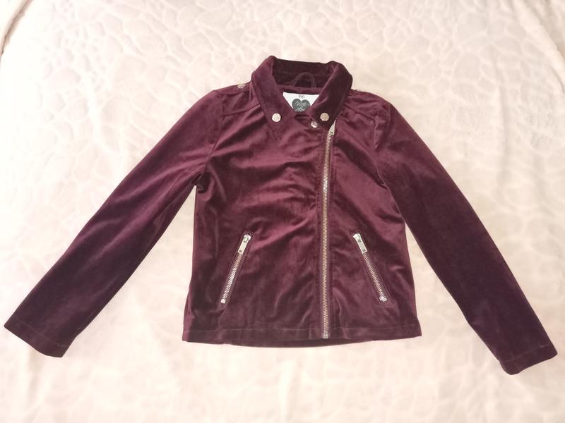 Стильная бордовая куртка-косуха из приятного на ощупь велюра. Идеальный вариант для осени. Фурнитура - золотистого цвета. Спереди - два удобных кармана на молнии. Снаружи - в идеальном состоянии, внутри немного растягивалась подкладка (в носке не заметно). Замеры: полуобхват груди - 37 см, ширина низа - 37 см, рукав - 47 см, длина - 45 см.