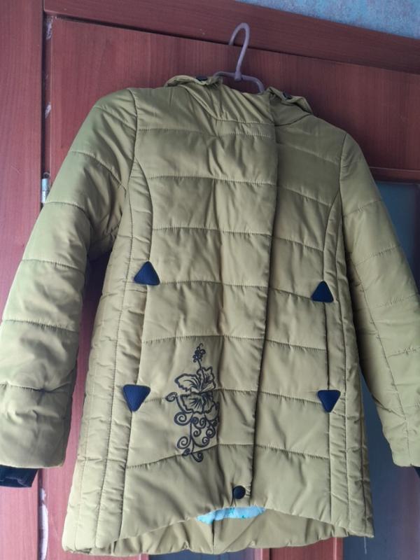 Удлиненная демисезонная курточка. Красивая и оригинальная вещь, которая согреет и подарит стильный комфорт для Вашей красавицы повседнев в прохладу. Усчитайте замеры на фото. Около возраста ребенка от 8 до 11 лет. Реальный цвет зеленого масла, красивый. На фото 3 примерно виден(почему не передает цвет через фото сайта).