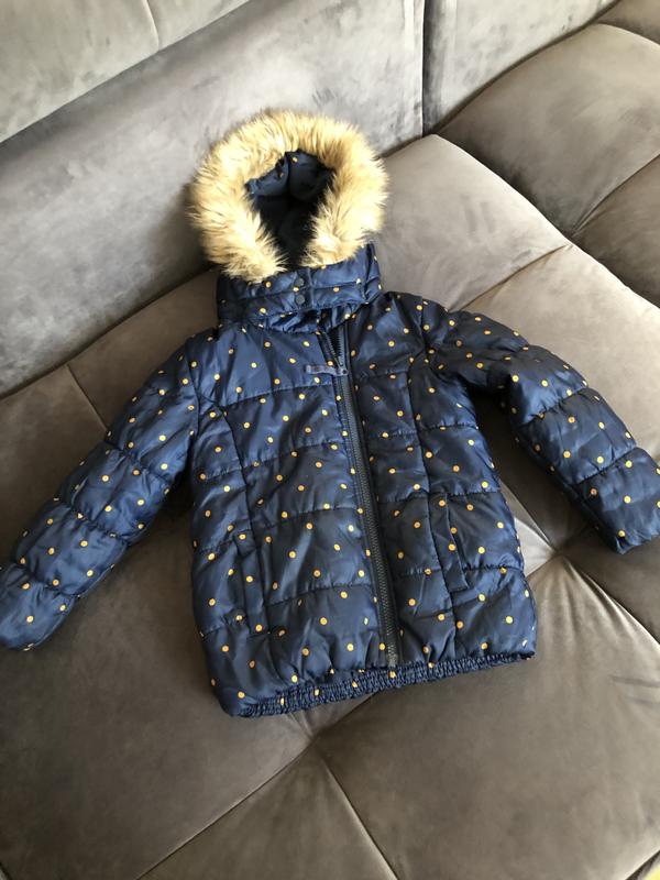 Курточка для дівчинки 4-5 років. Утеплено синтепоном та флісом. Підходить як демісезонна так і зима. Капюшон знімається. Плечі 32-33 см , довжина по спині 47 см , рукав 40-41 см , під руками 38-39 см , пояс 39-40 см