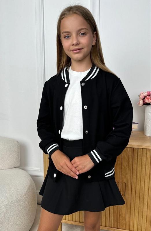 Стильный бомбер в черном цвете на кнопках ткань трикотаж качественный Алекс с карманами качество шикарное рекомендую 🔥 Цена 965 грн размеры полномерные 140,146,152,158,164 ▪️N-20
